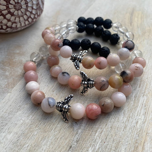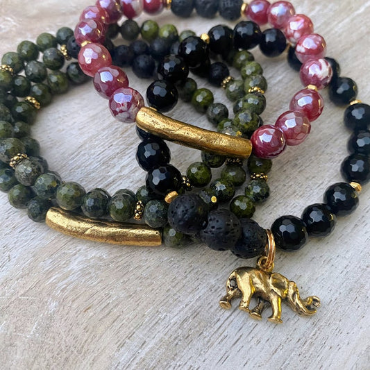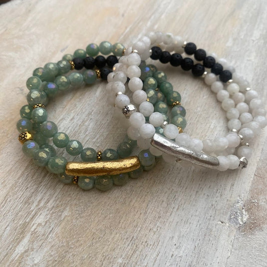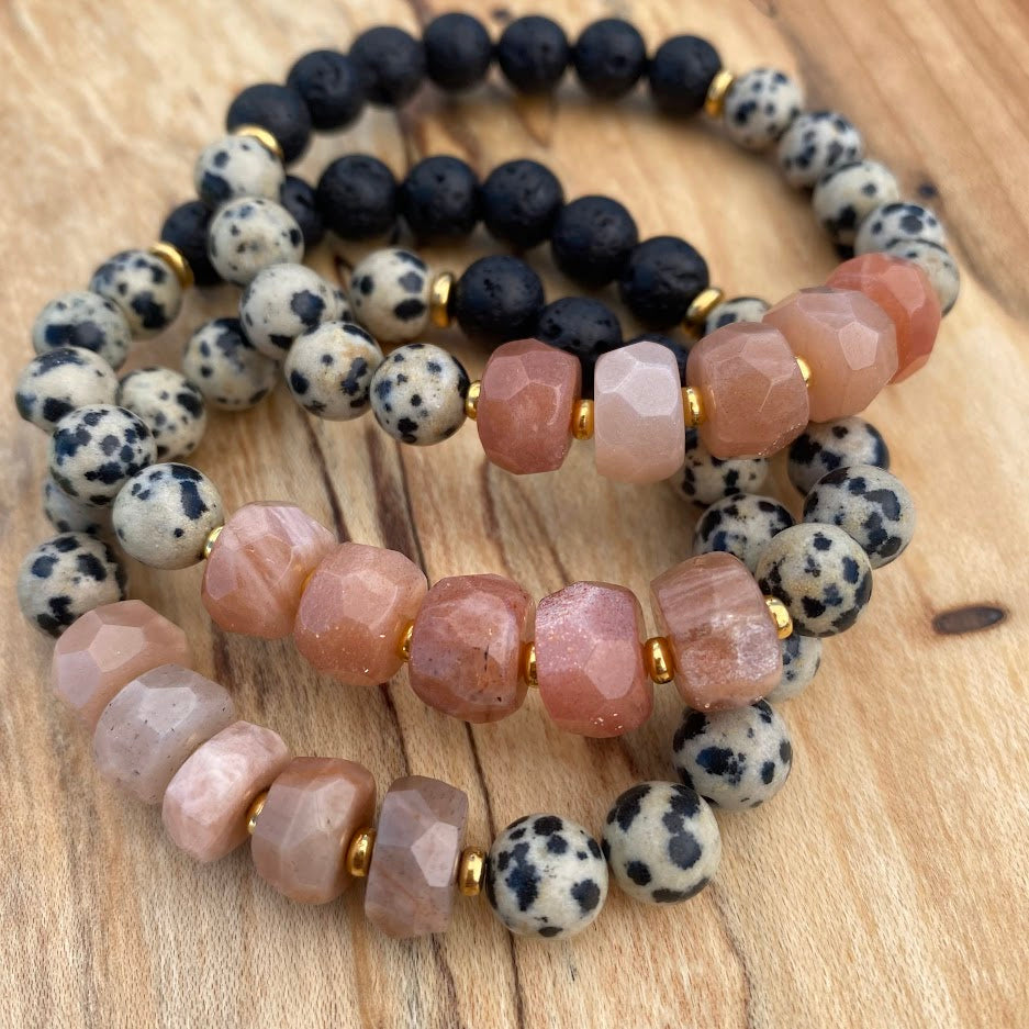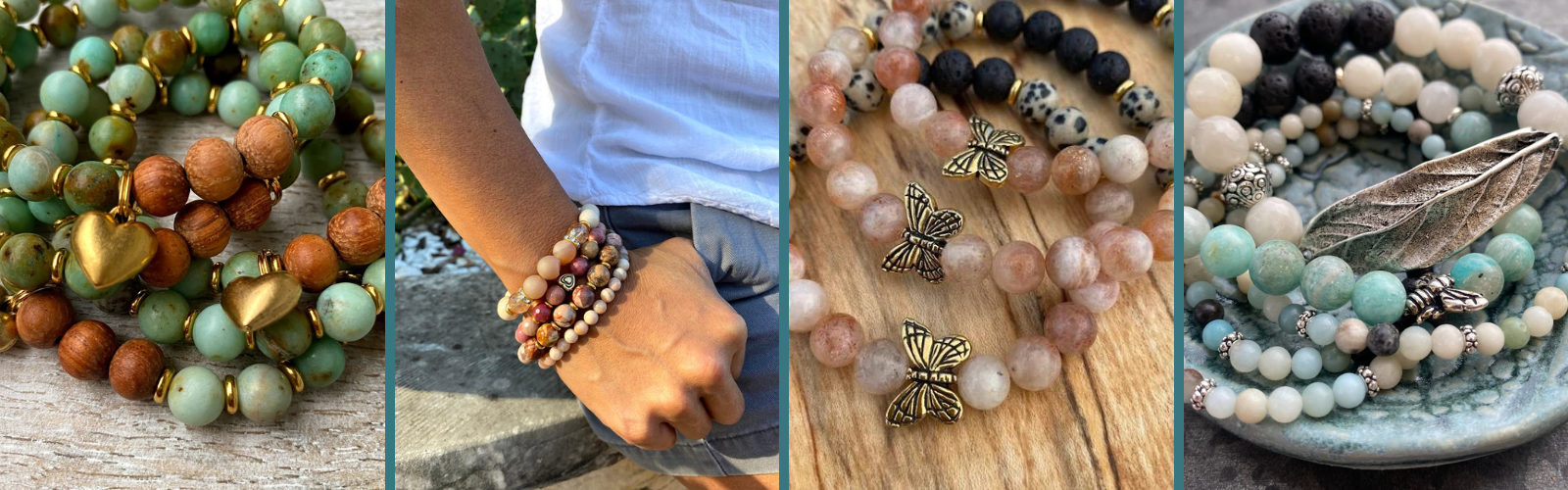 Wearing your bracelets with your favorite essential oil is an amazing way to experience the emotional benefits of the oil and will quickly become one of your favorite self-care routines. We design and handcraft all of our bracelets with beautiful gemstones, wood and lava beads and gold, silver and brass accents. You'll never want to take them off!