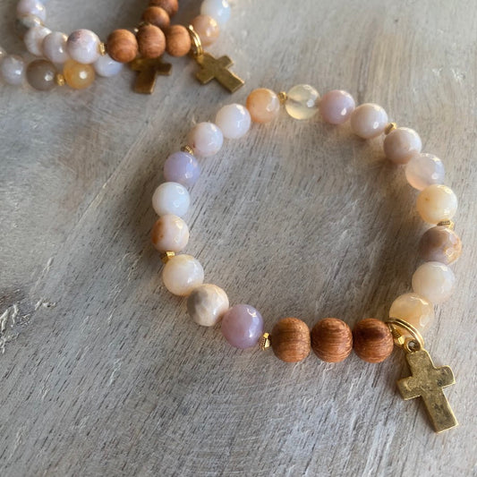 Gold Cross | Agate & Bayong Wood Diffuser Bracelet