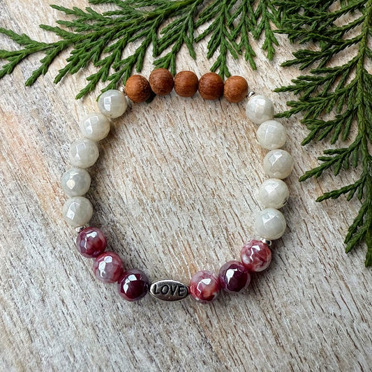Holiday Love | Mystic Red Fire Agate & Moonstone with Bayong Wood Diffuser Bracelet