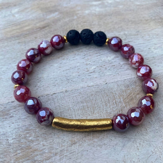 Holiday Joy | Mystic Strawberry Quartz & Bayong Wood Diffuser Bracelet