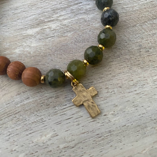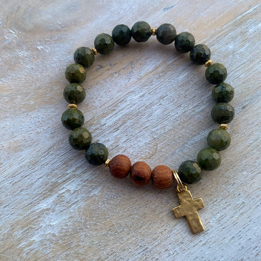 Gold Cross | Epidote Pyrite & Bayong Wood Diffuser Bracelet