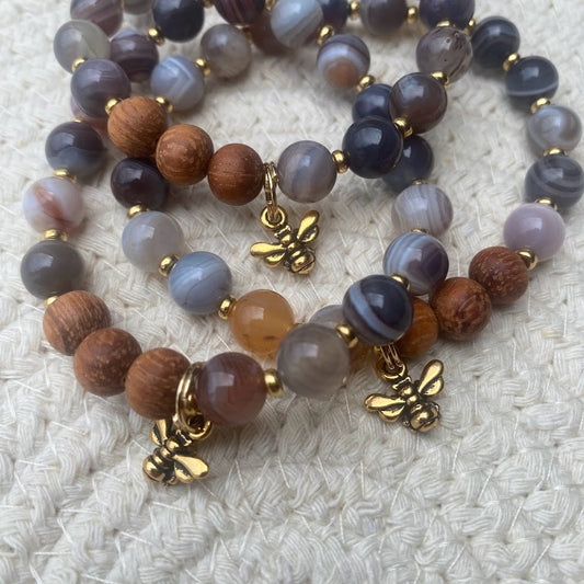 Bee Positive | Botswana Agate & Bayong Wood Diffuser Bracelet