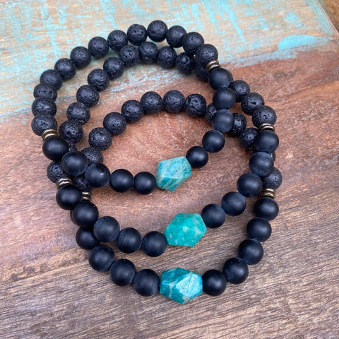 Stand True | Russian Amazonite & Onyx Lava Bead Men's Diffuser Bracelet