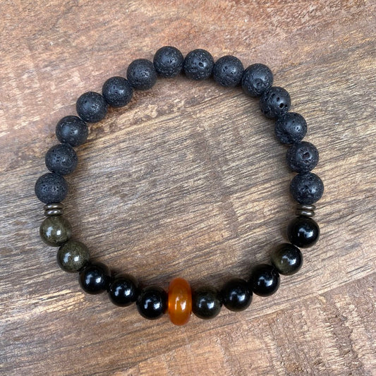 Protection | Obsidian & Lava Bead Men's Diffuser Bracelet