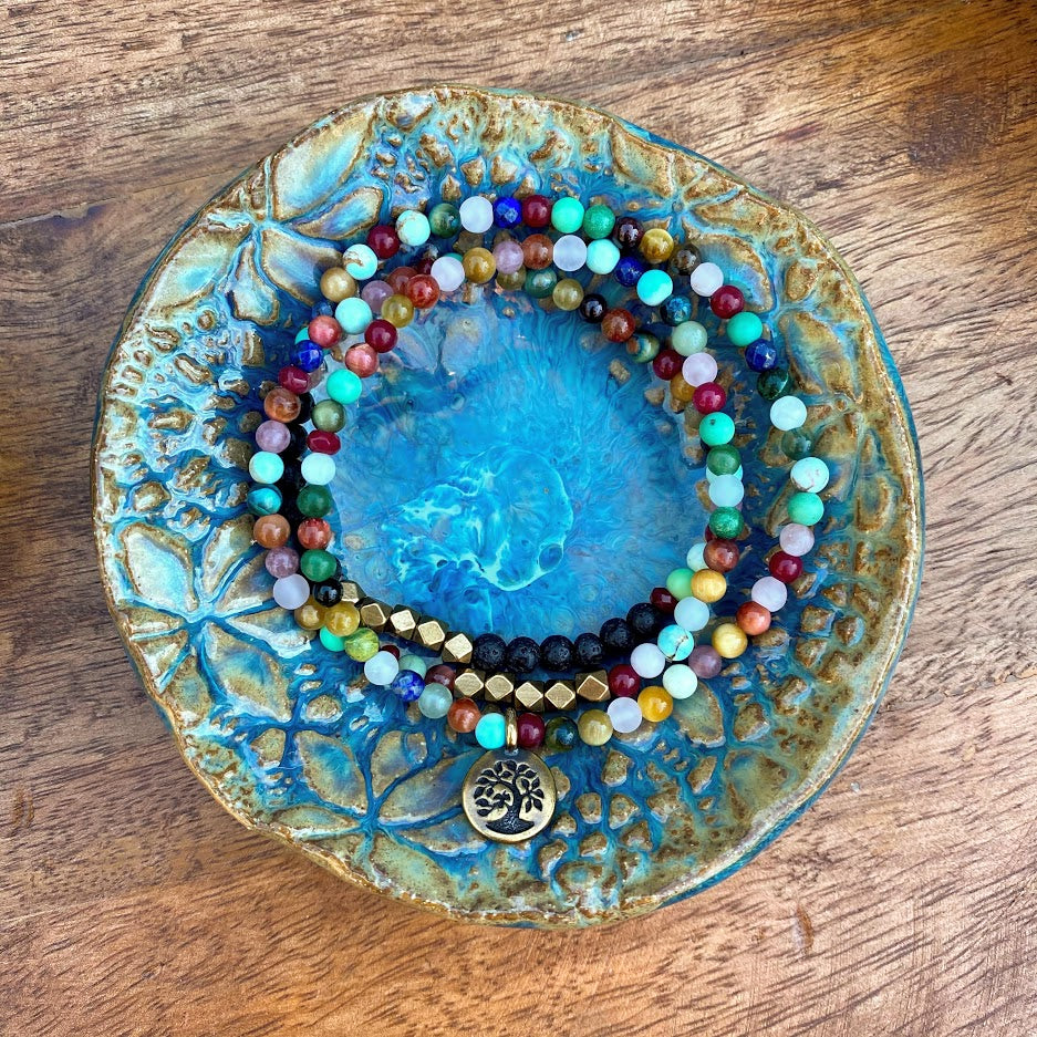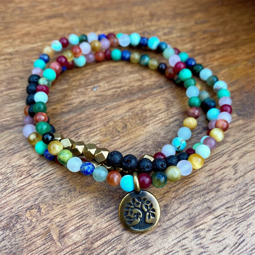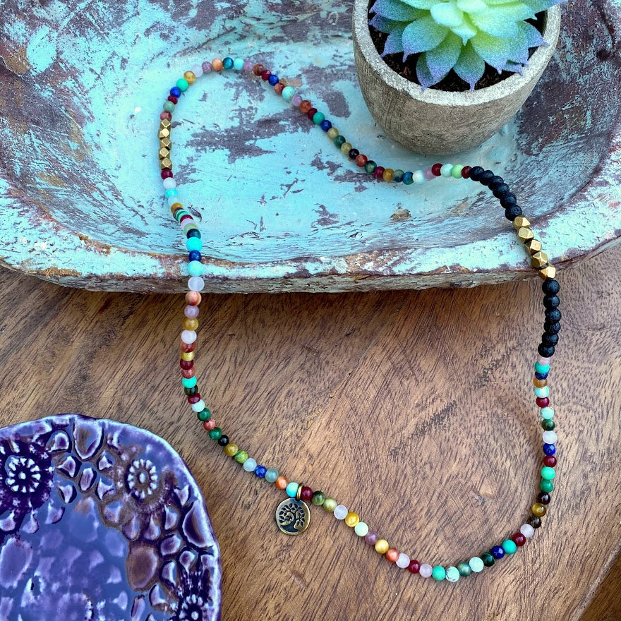 Multi Gemstone + Lava + Antique Brass + Brass Tree of Life
