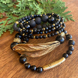 Black & Gold Wrap | Onyx & Lava with Antiqued Gold Wrap Diffuser Bracelet
