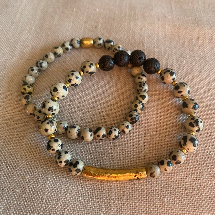Dalmatian Jasper + Black Lava + 24k Gold Accents