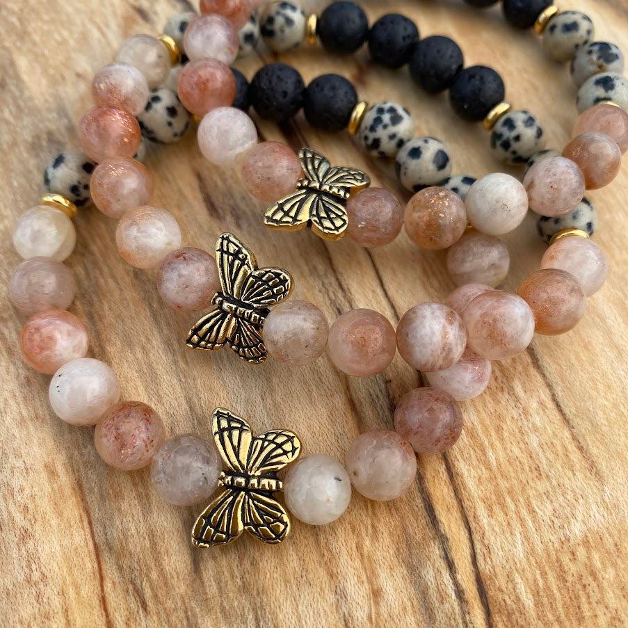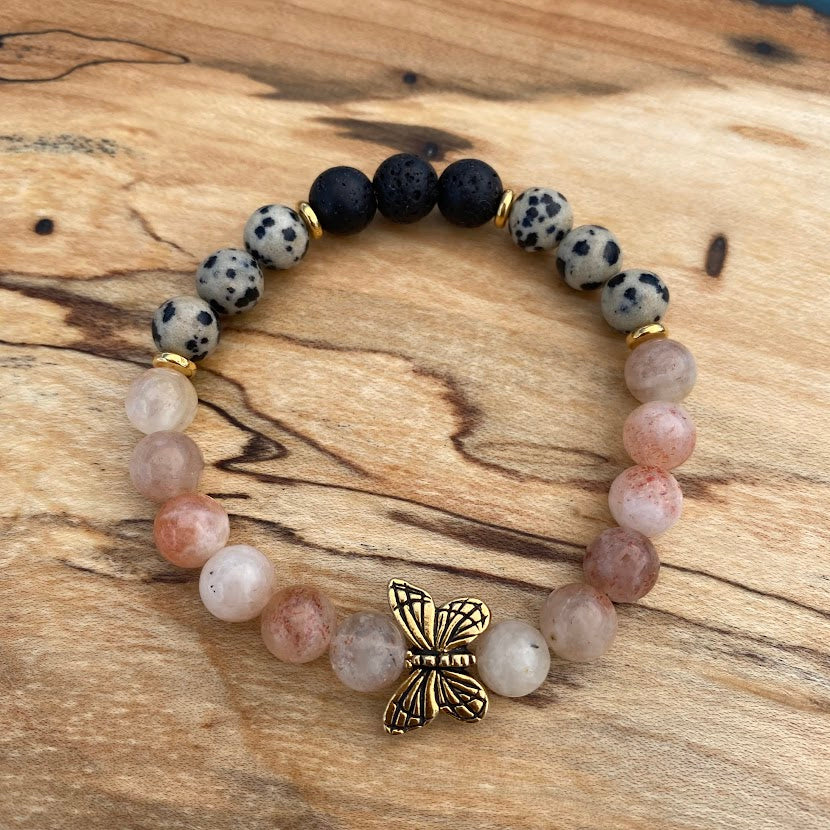 Gold Sunstone + Dalmatian Jasper + Butterfly + Lava + Gold accents