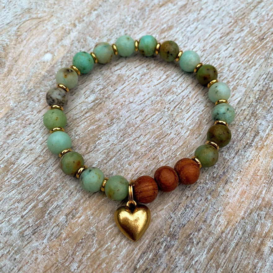 Happy Heart | Chrysoprase & Bayong Wood Gold Heart Charm Diffuser Bracelet