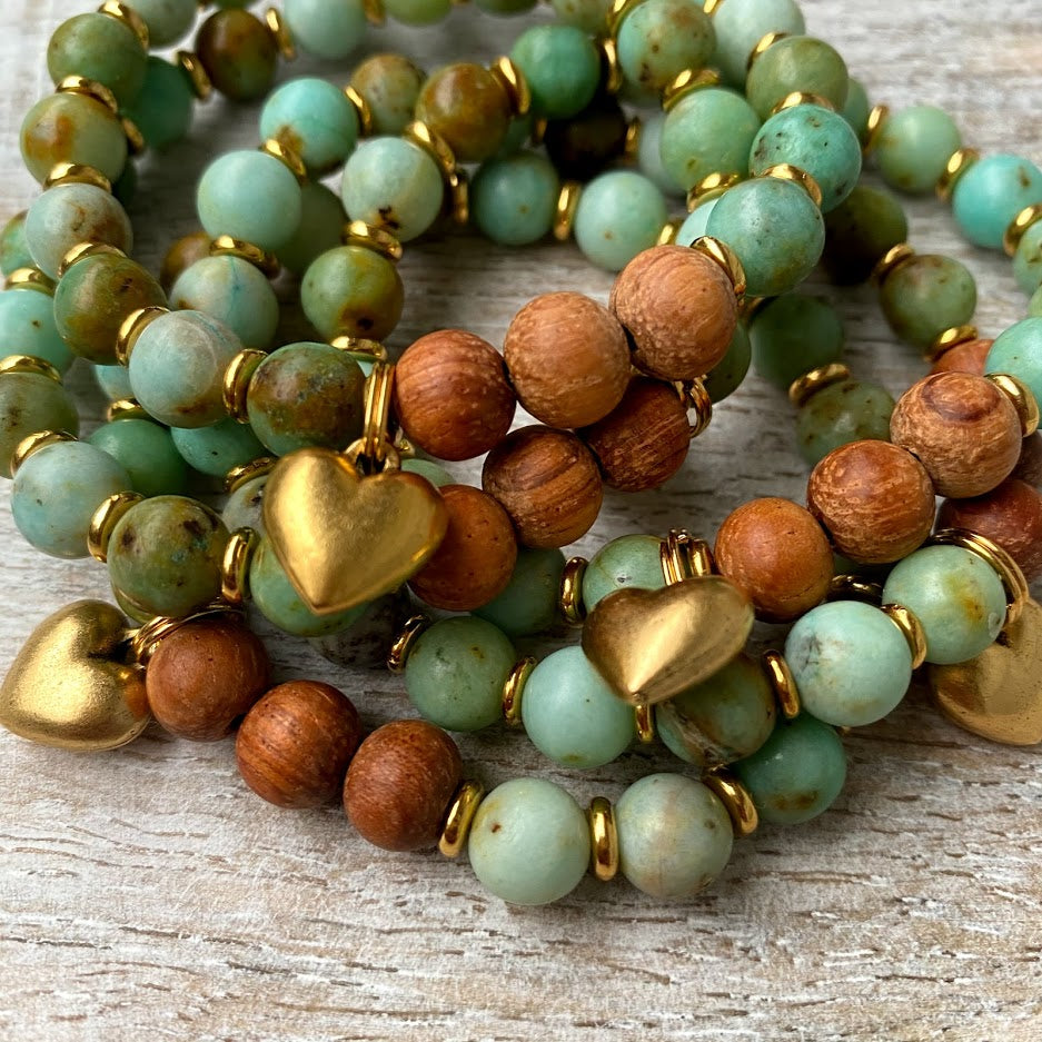 Chrysoprase + Bayong Wood Wood+ Gold Heart Charm + Gold Plated Accents
