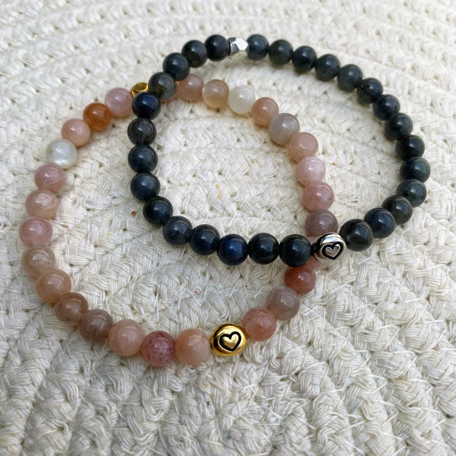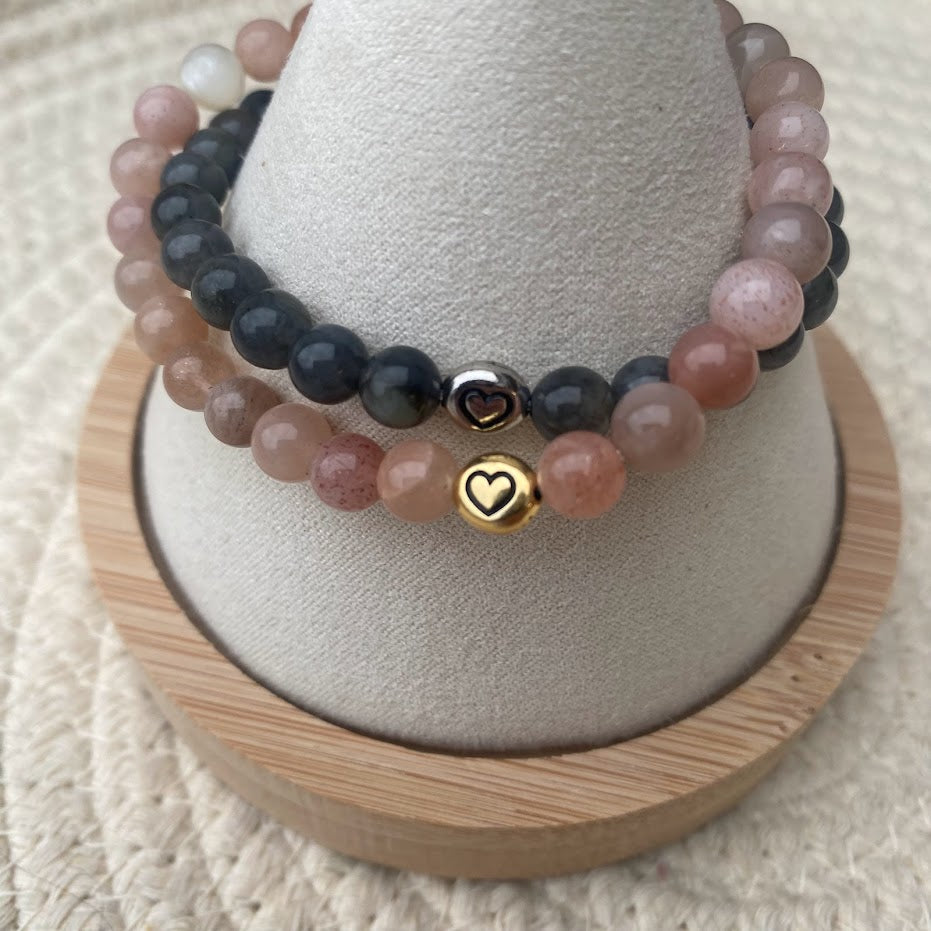 Hearts | Sunstone and Labradorite Gemstone Stacking Bracelets