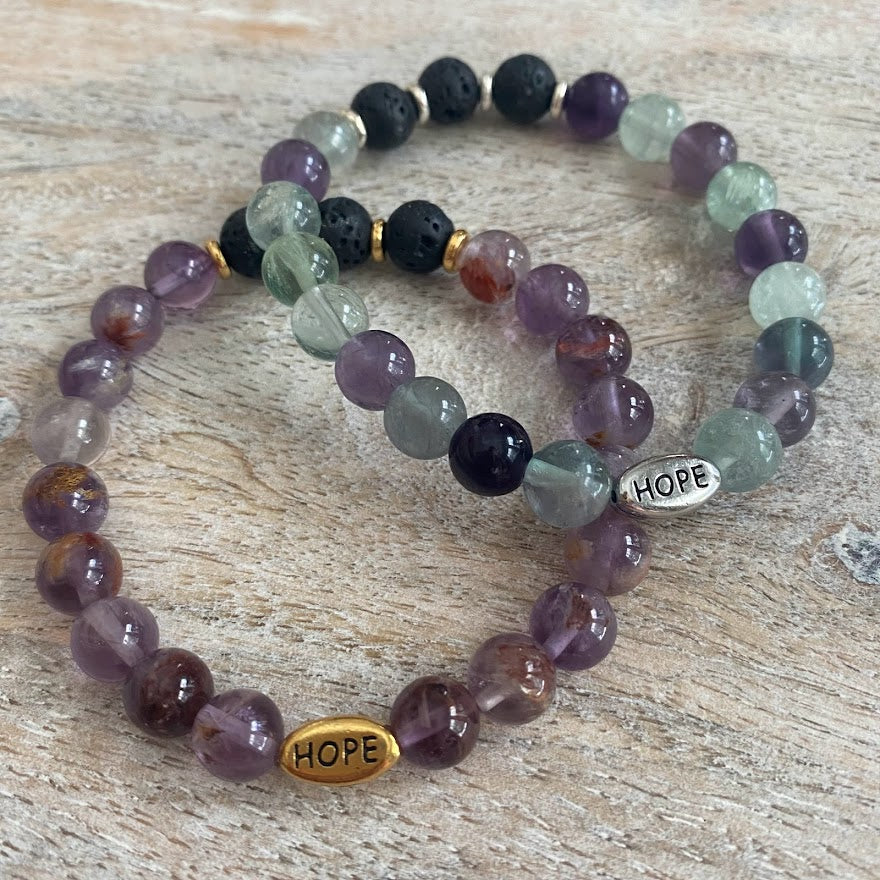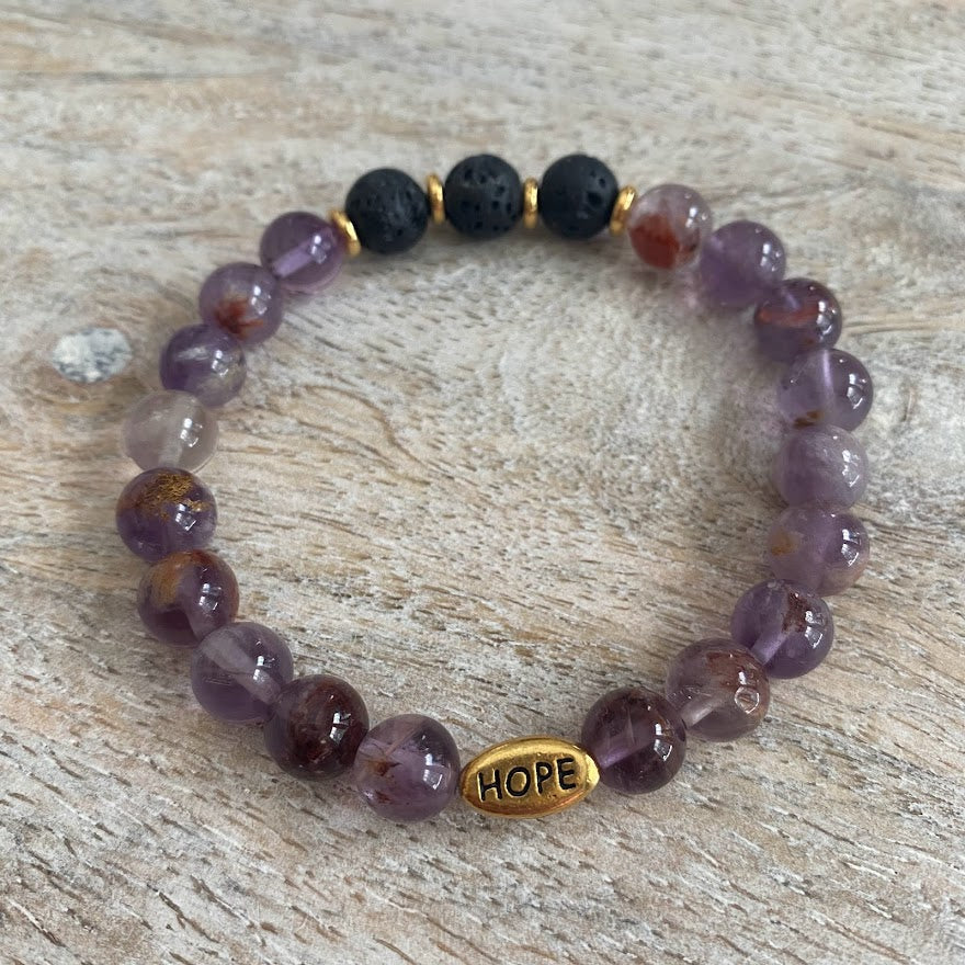 The unfinished lava beads will absorb essential oils and diffuse them as you wear the bracelet.