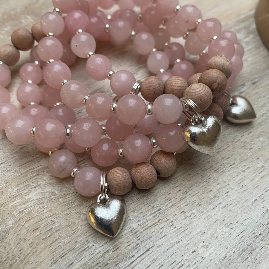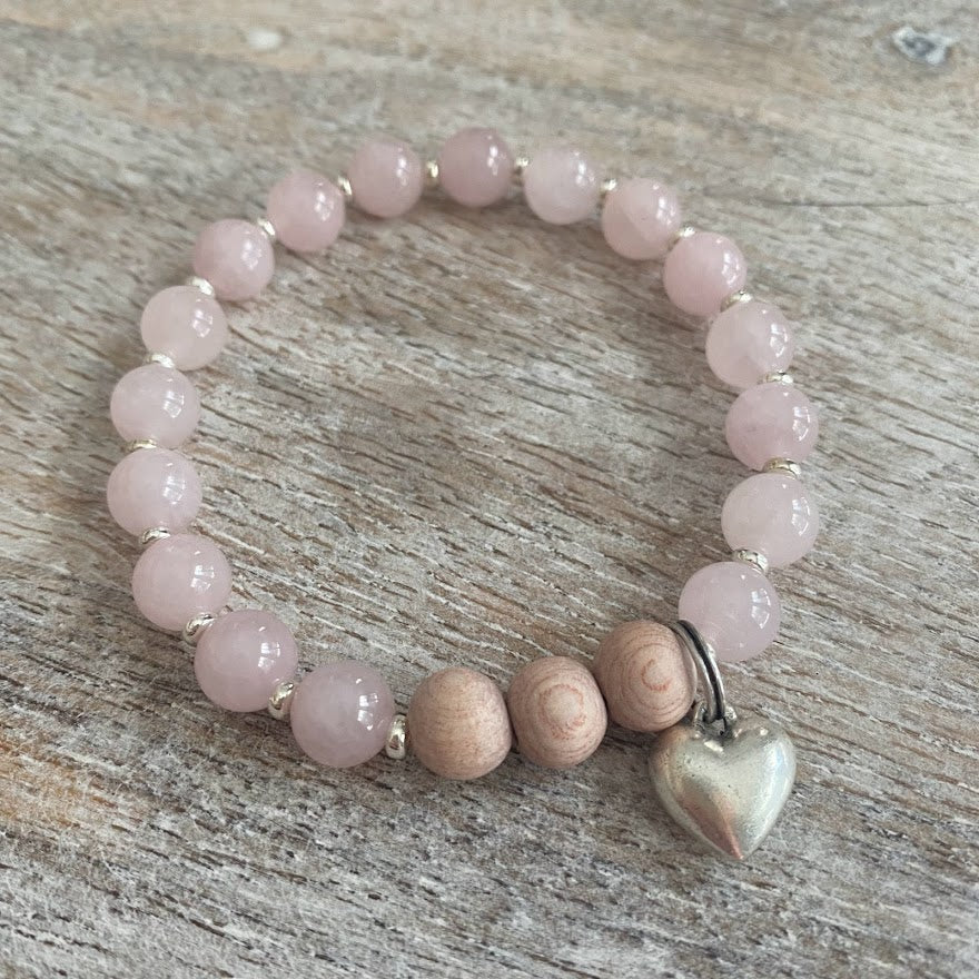 Loving Heart | Rose Quartz & Rosewood Silver Heart Charm Diffuser Bracelet