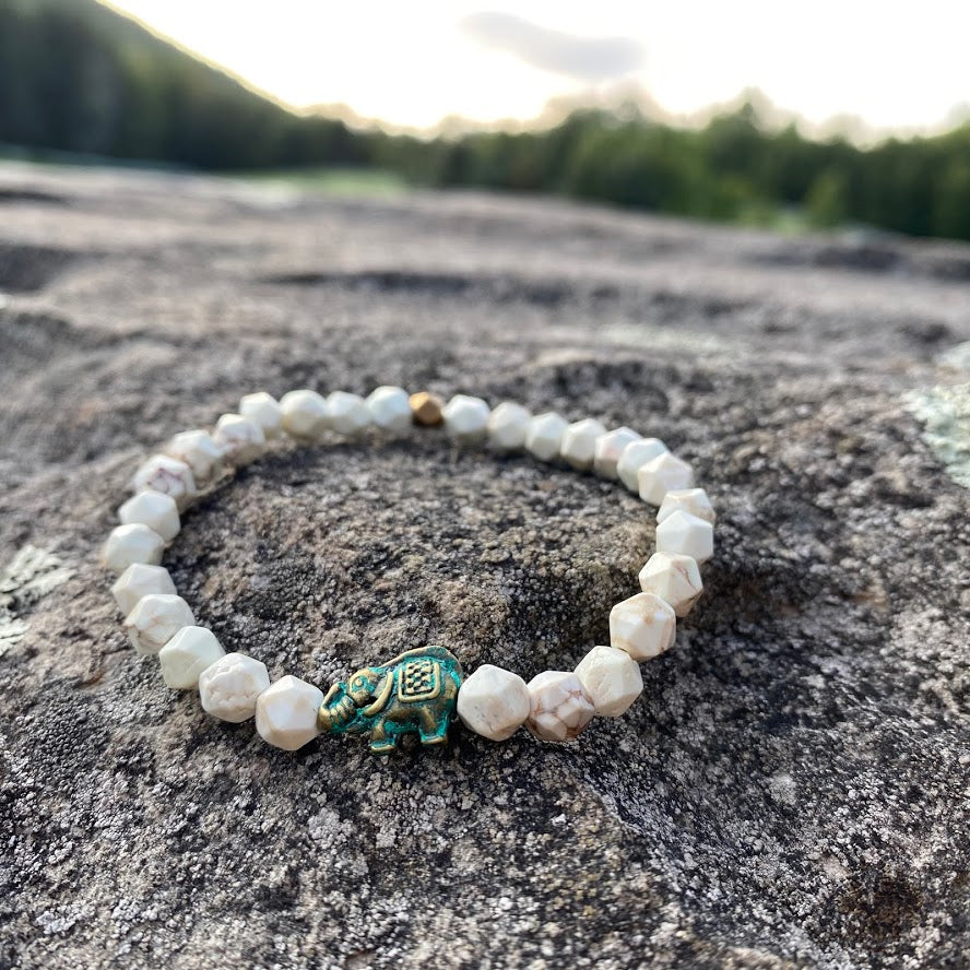 Mini Gemstone Stackers | Lucky Elephant White Turquoise Bracelet