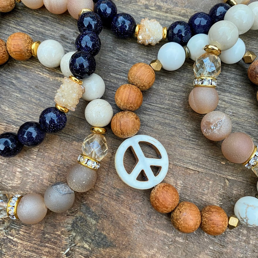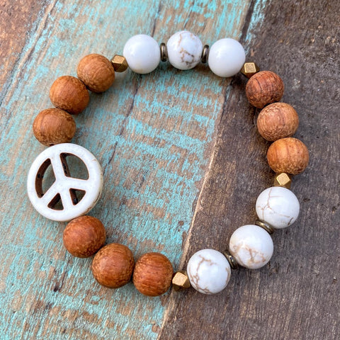 White Turquoise Peace Sign + Bayong Wood Wood+ Brass Accents