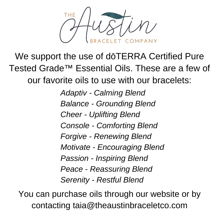We created these bracelets to be worn with your favorite essential oil if you choose. It is an amazing way to get the benefit of the oil as you go about your day.
