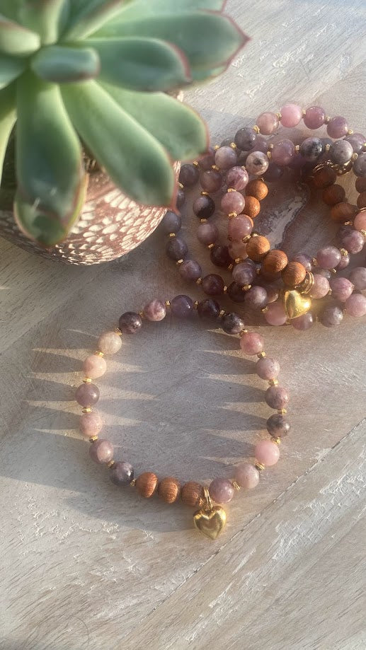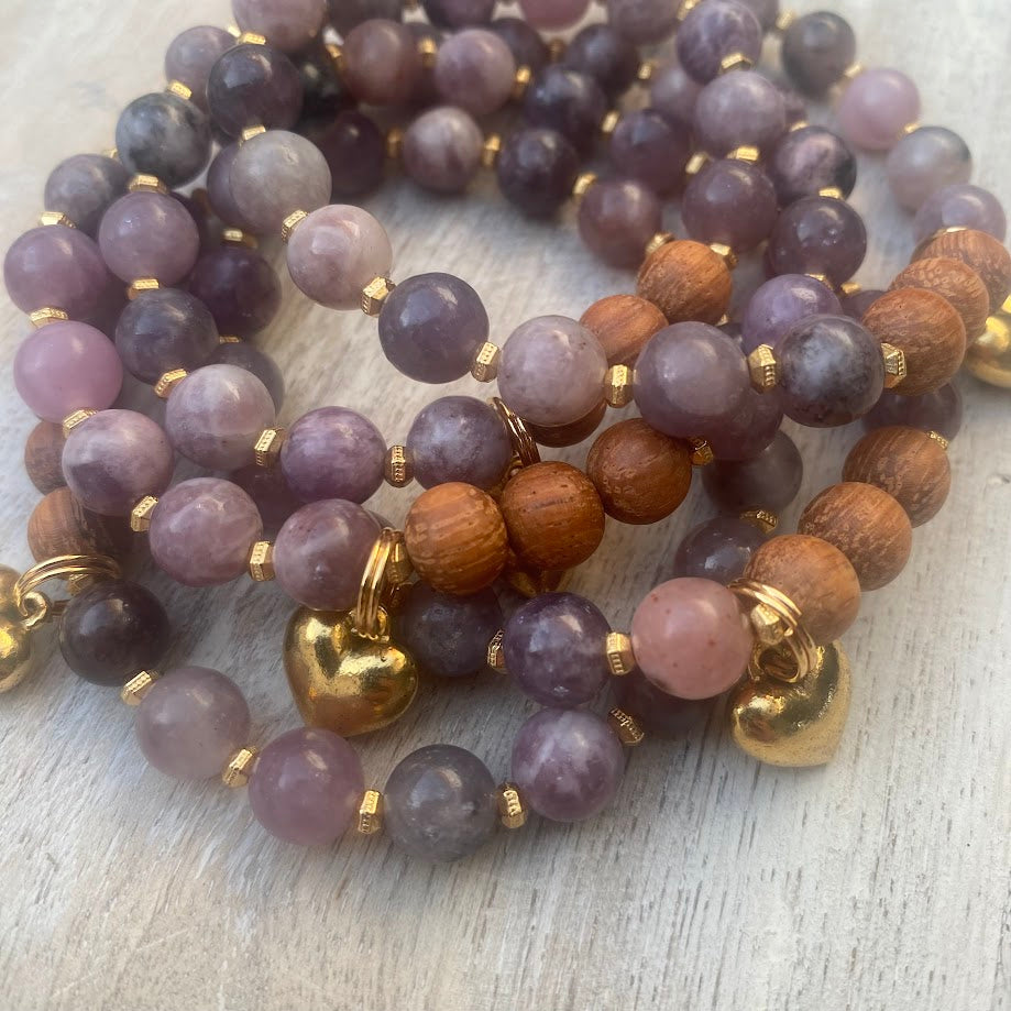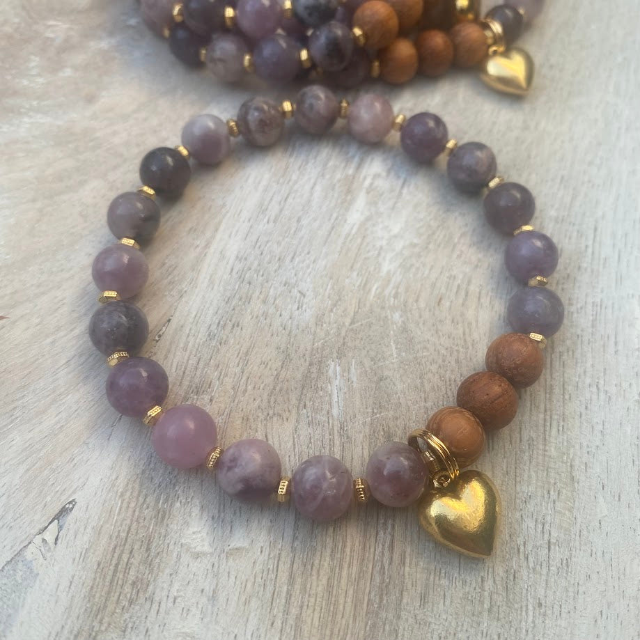 Lepidolite + Bayong Wood + Gold Heart Charm + Gold Plated Accents