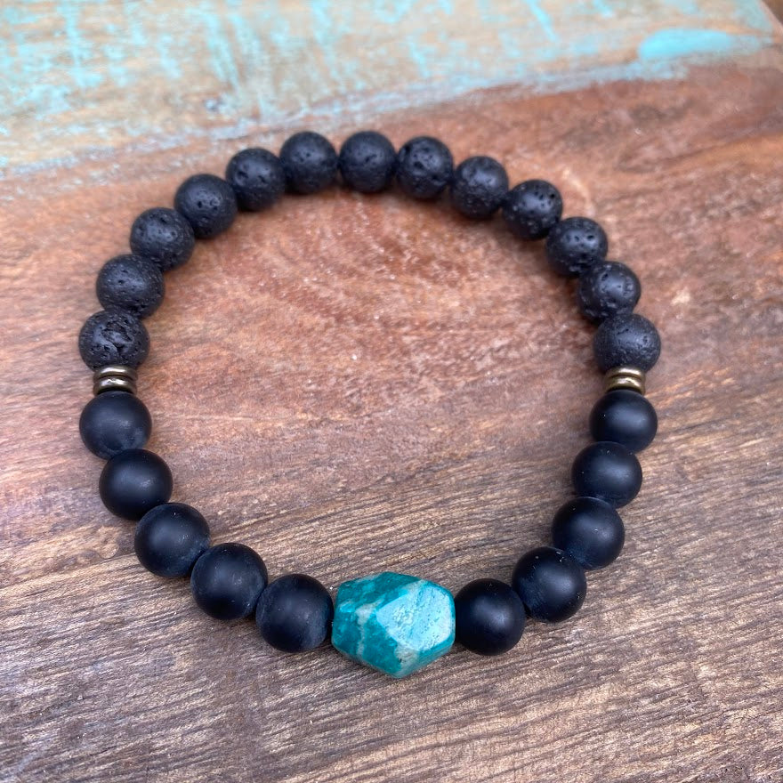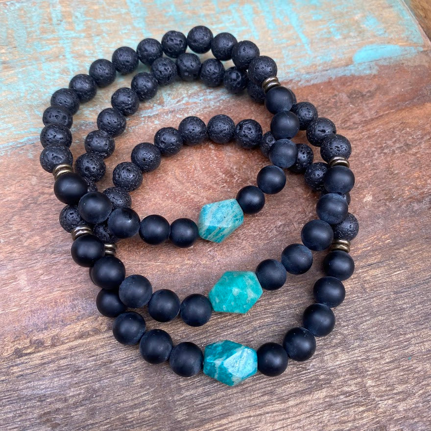 Russian Amazonite + Black Onyx + Black Lava + Brass
