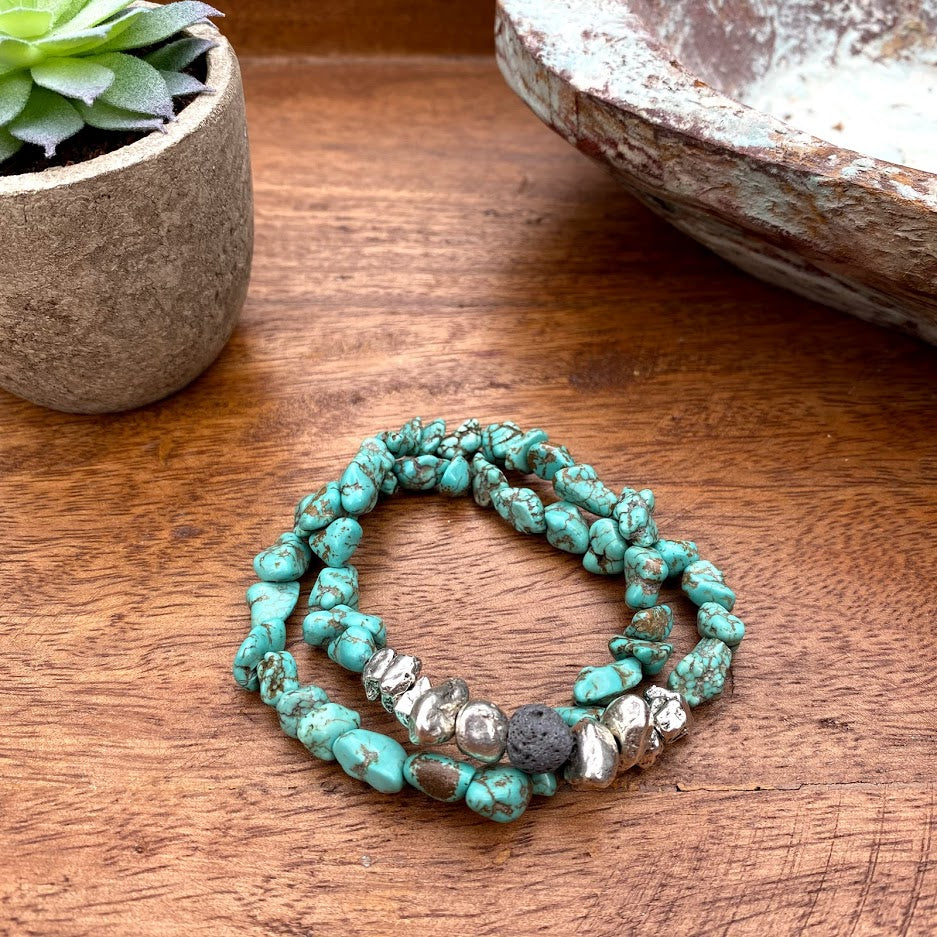 Turquoise & Silver Nugget Lava Diffuser Bracelet